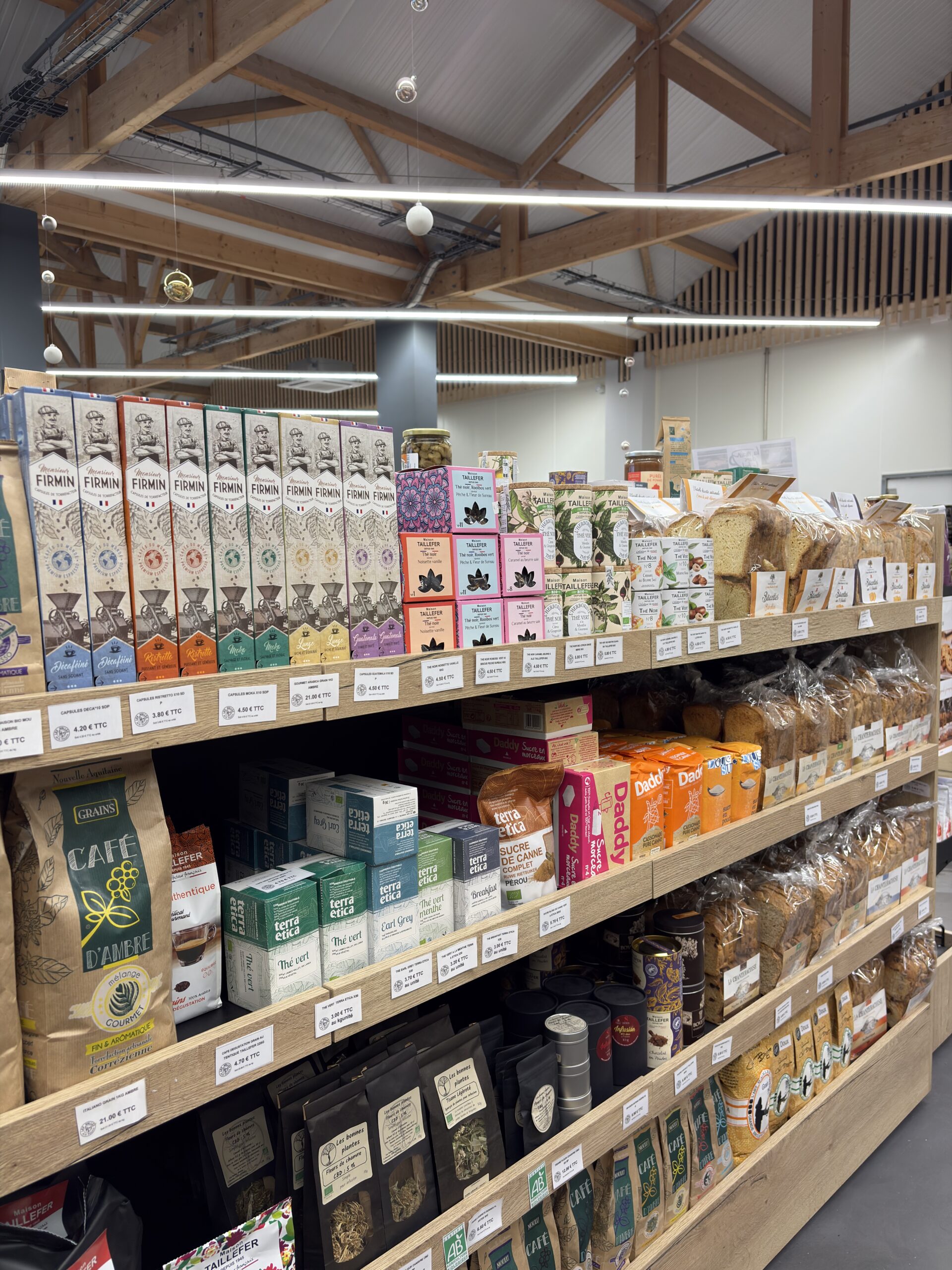 Le magasin propose également un espace de restauration sur place et à emporter, permettant de déguster directement des plats préparés à partir de produits de qualité. Des animations avec les producteurs et des ateliers artisanaux mettent en valeur le savoir-faire régional et favorisent le contact avec le terroir.